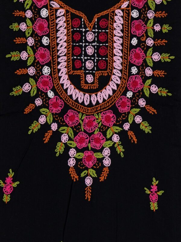 Adrika Multicoloured Thread Hand Embroidered Black Coloured Kora Cotton Unstitched Kurta