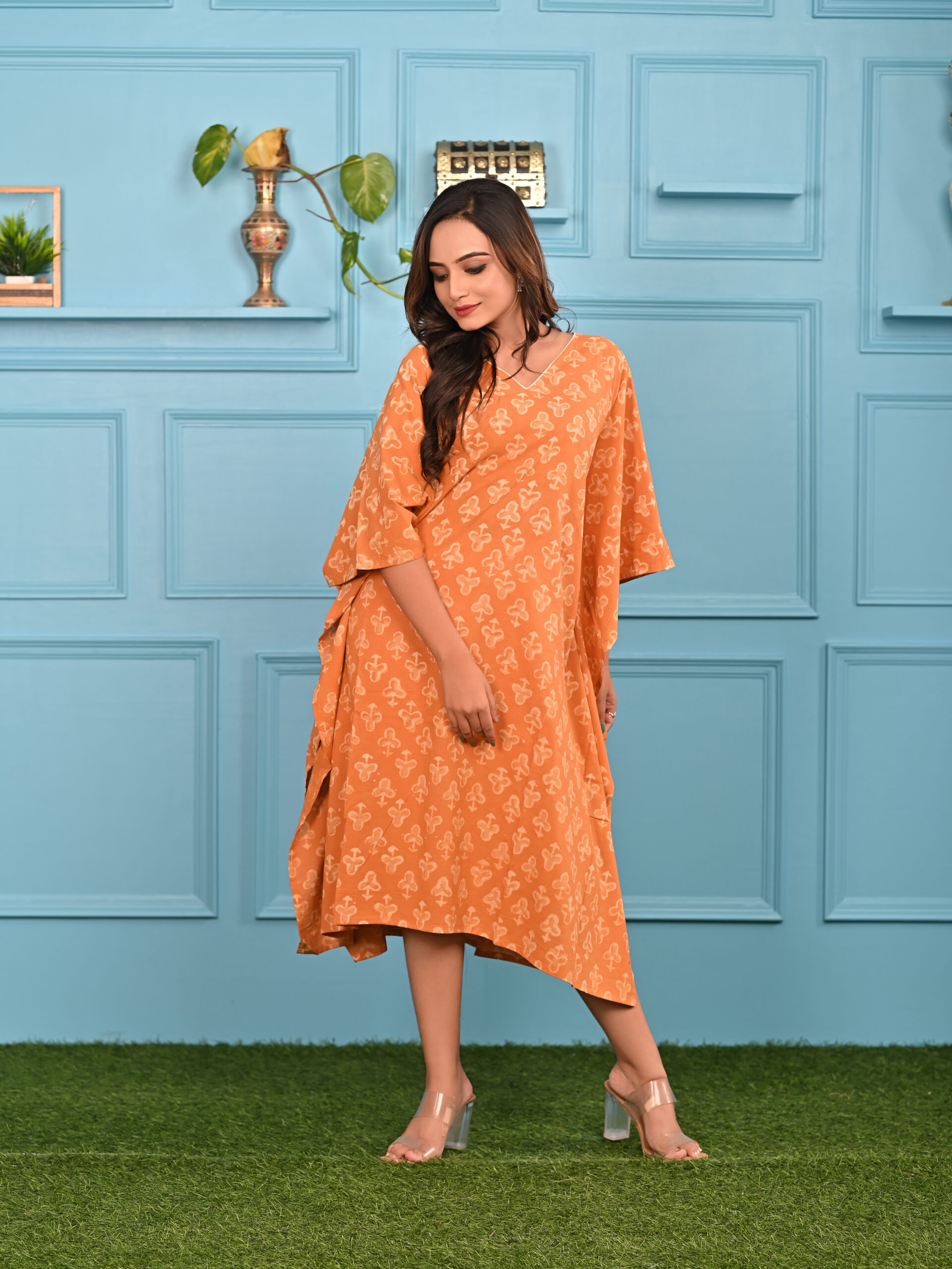 Adrika’s Ochre Yellow Dabu Cotton Kaftan