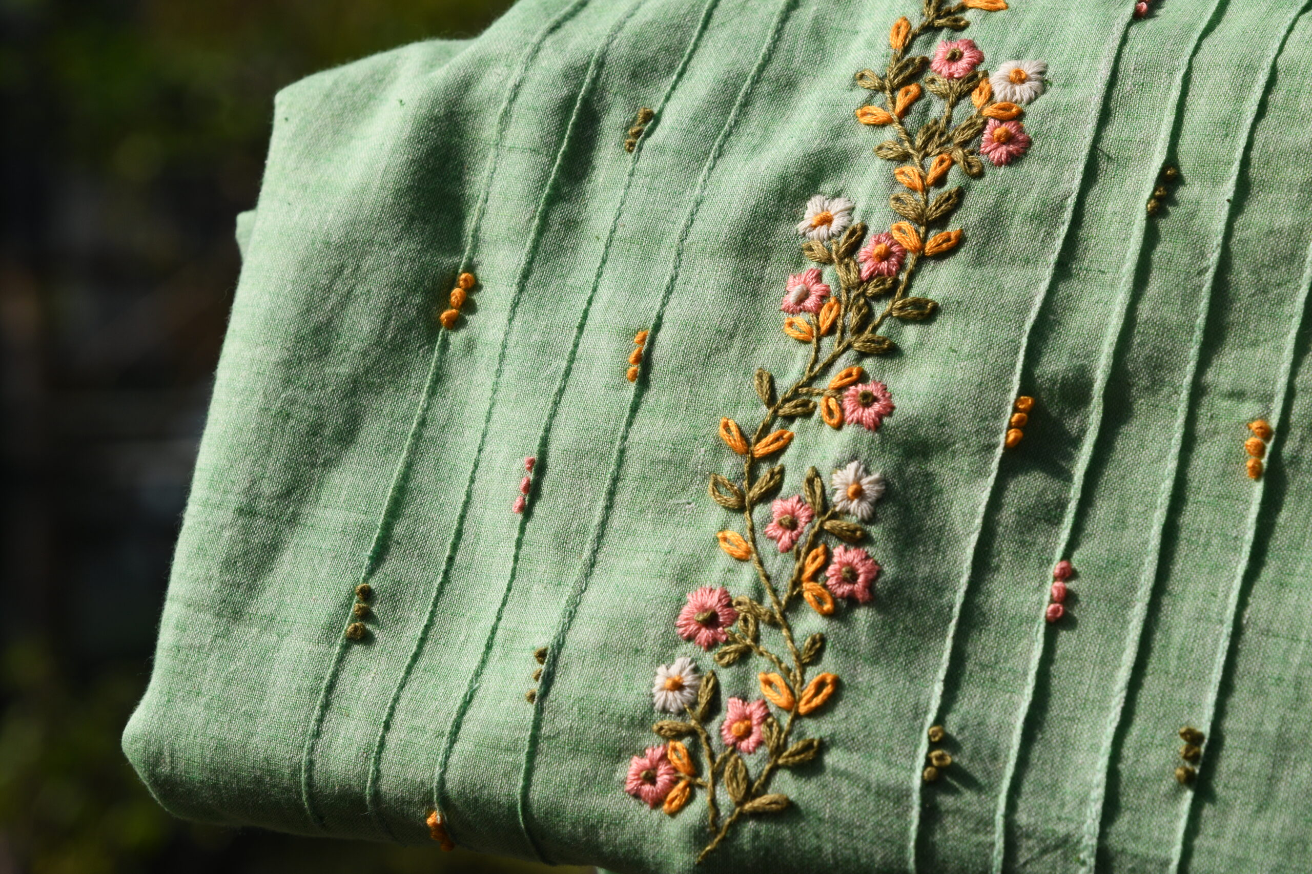 Adrika’s Pastel Green Handloom Cotton 2pc Kurti Set