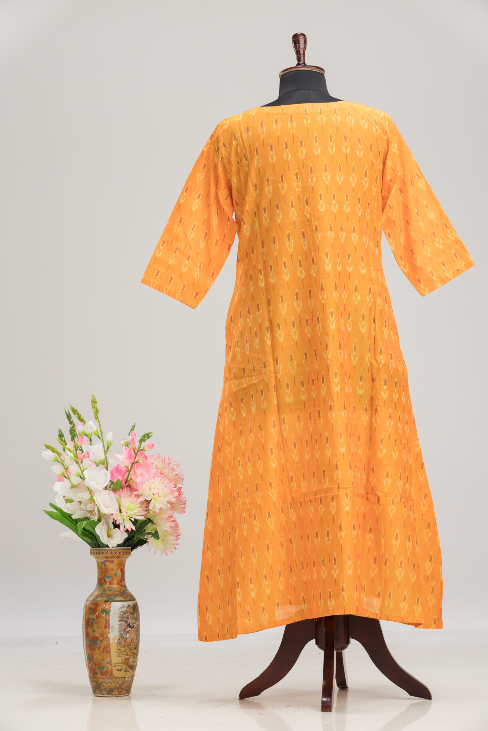 Adrika’s Yellow Ikkat Pure Cotton Long Dress