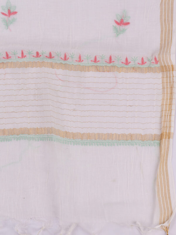 Adrika’s Lucknow Chikankari Off White Chanderi Cotton Semi-stitched 2-Piece Kurti Set