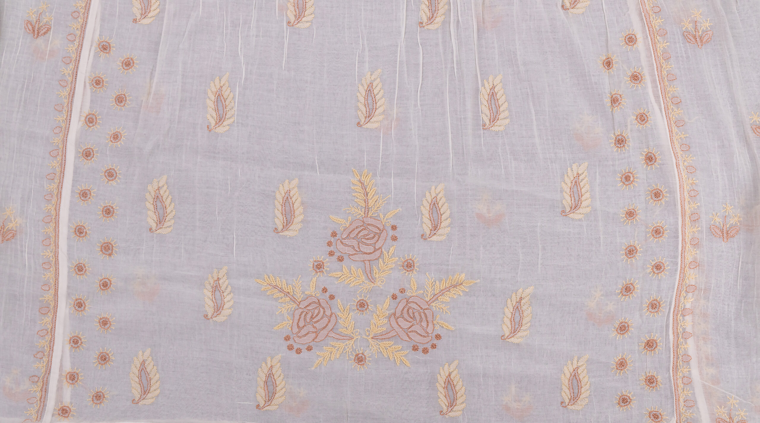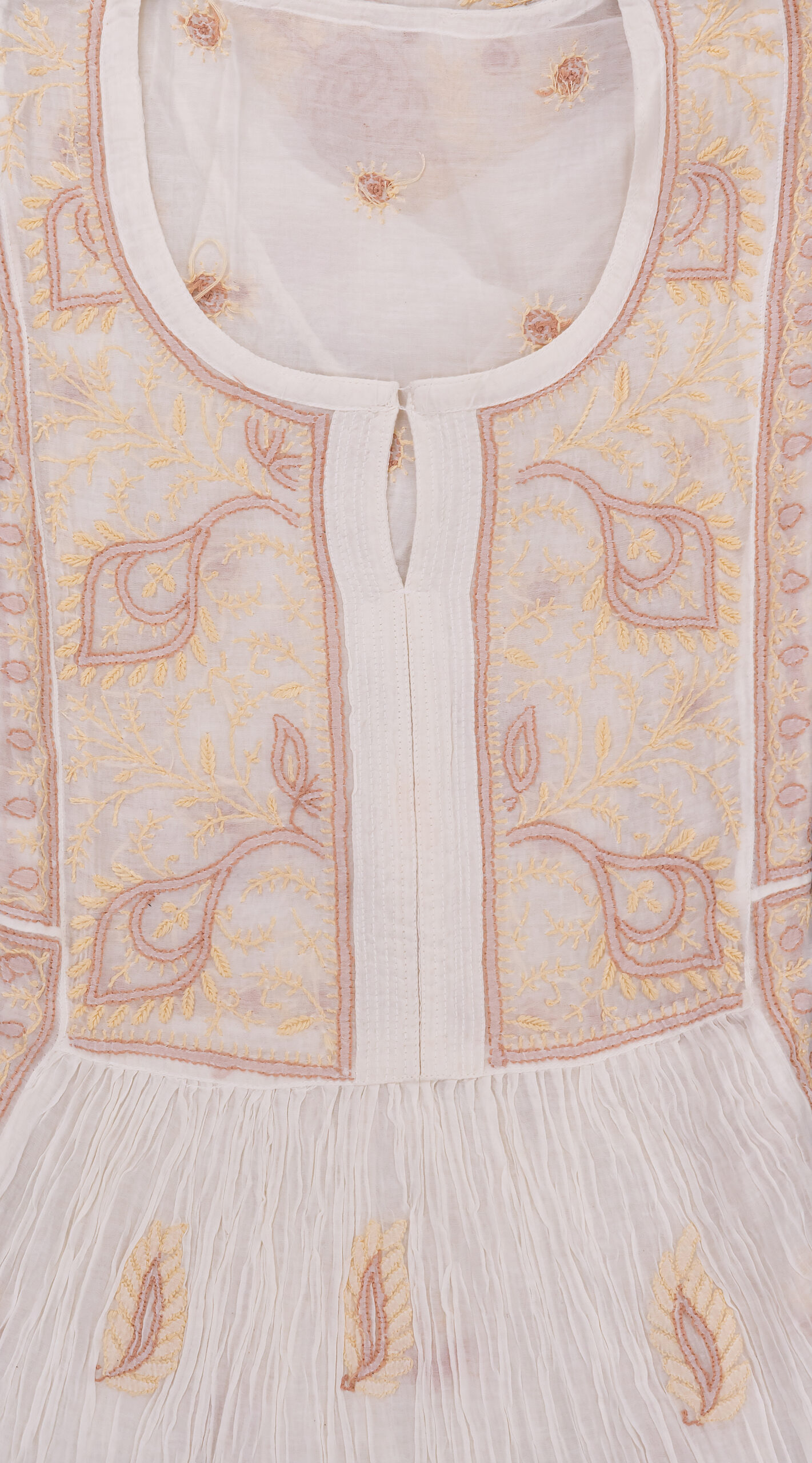 This off white Chanderi cotton Lucknow Chikankari semi-stitched 2 pc kurti set offers a comfortable & relaxed silhoutte to the wearer,the fabric & embroidery is skin friendly