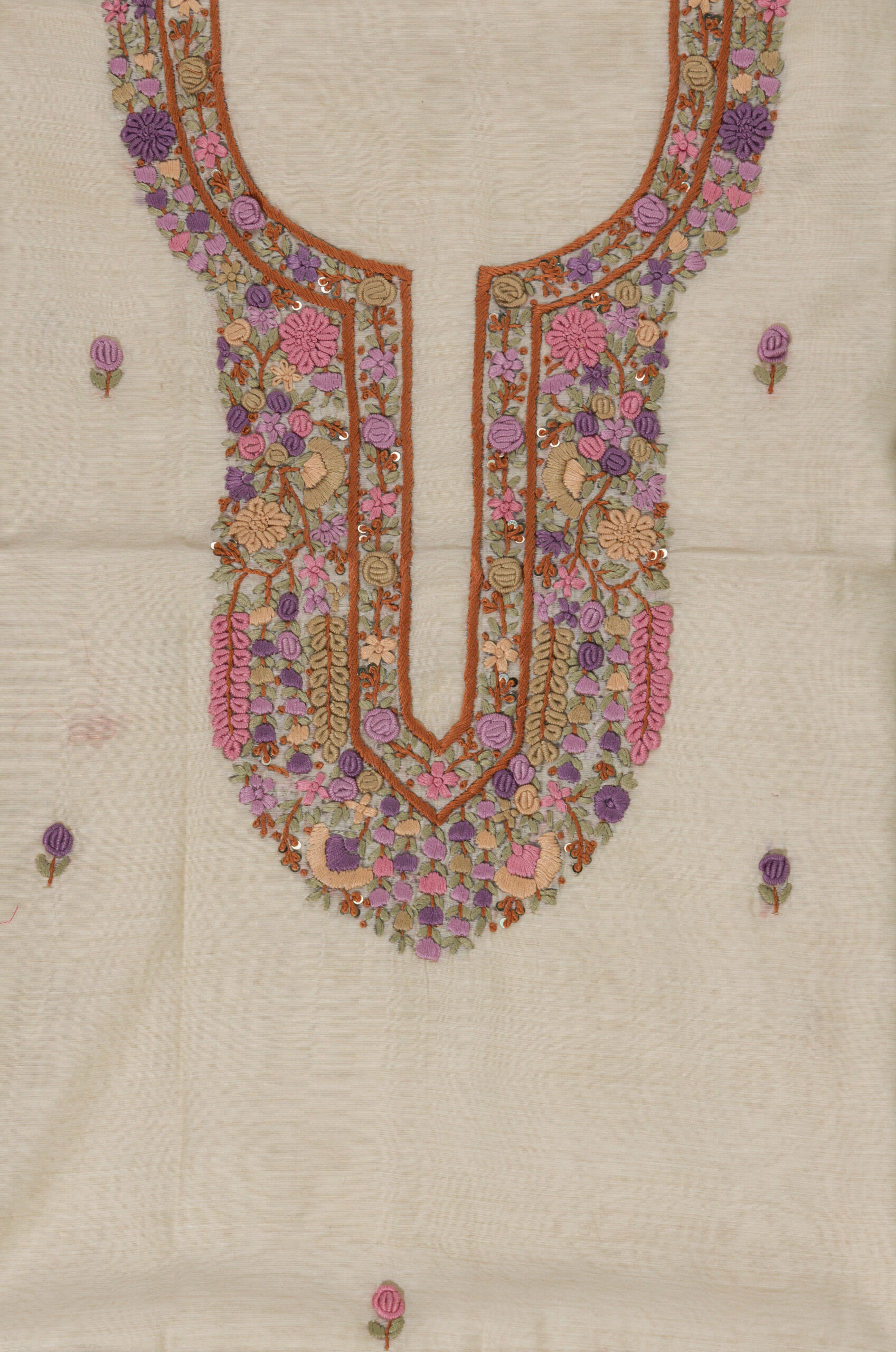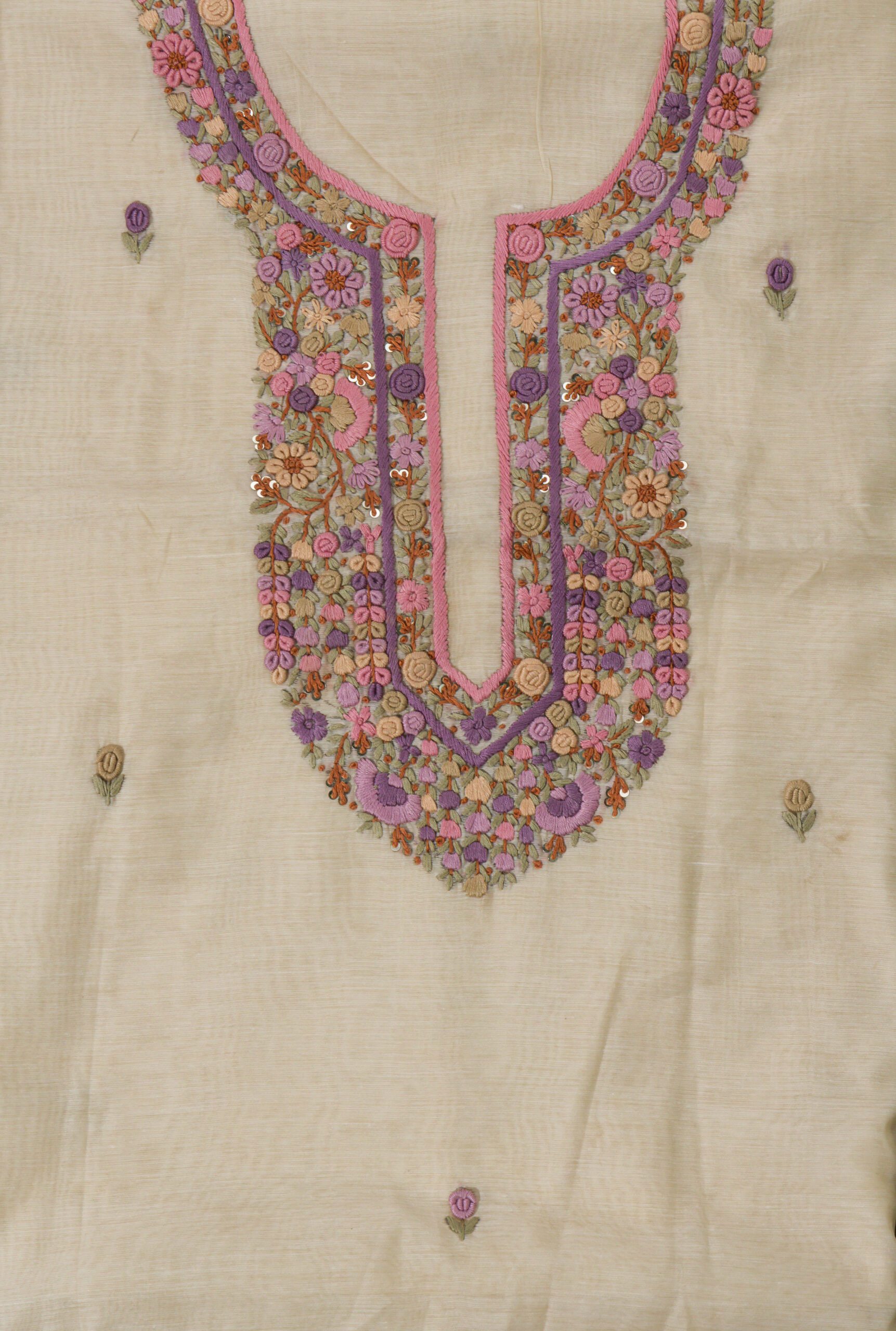 Adrika Hand Embroidered Chanderi Cotton Unstitched Kurta